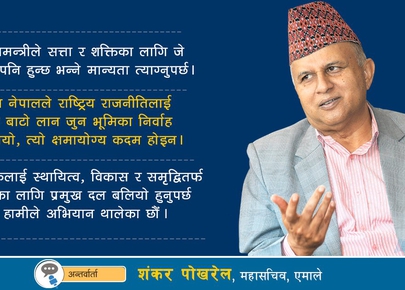 नेकपा एमालेका महासचिव शंकर पोखरेल वैचारिक हिसाबले तुलनात्मक रूपमा प्रखर नेता मानिन्छन्।कुनै बेला मदन भण्डारीसँग नजिक रहेर काम गरेका पोखरेल भण्डारीले सुरू गरेको जनताको बहुदलीय जनवादको राम्रो व्याख्याता समेत मानिन्छन्। २०७८ मंसिरमा चितवनमा भएको एमालेको दसौं महाधिवे...